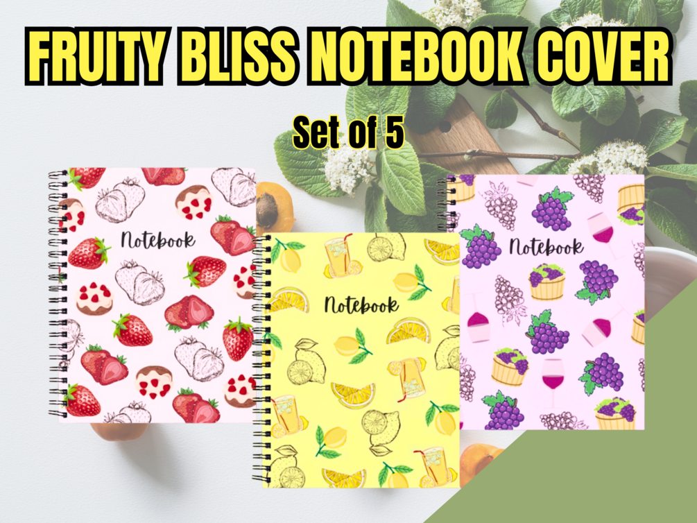 SET OF 5 Fruity Bliss Notebook Cover Digital Prints/ DIGITAL PRINTABLES NOTEBOOK COVER