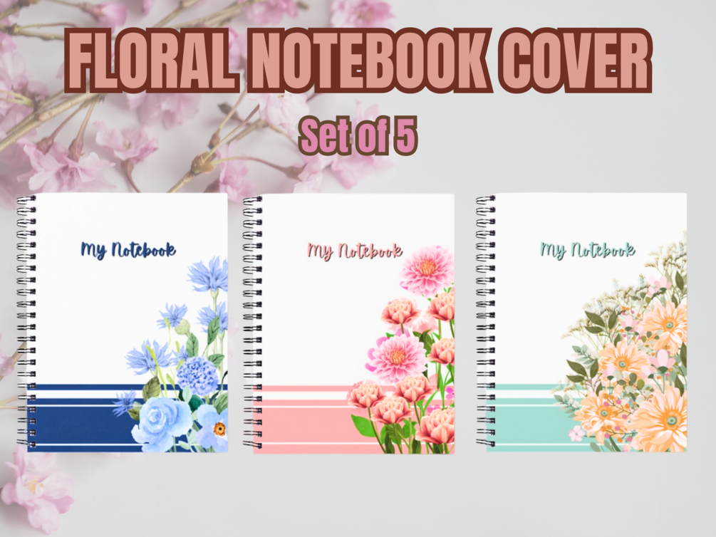 SET OF 5 FLORAL NOTEBOOK COVER DIGITAL ART/FLOWER NOTEBOOK COVER DIGITAL PRINTS NOTEBOOK PRINTABLES